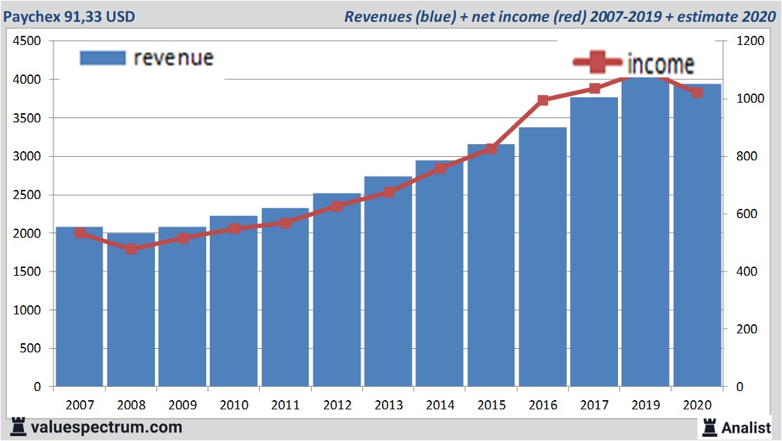 Morgen wird die amerikanische Firma Paychex die Ergebnisse des letzten Quartals veröffentlichen. Für dieses Jahr prognostiziert die Mehrheit der Analysten einen Gesamtumsatz 3,94 Mrd. Dollar. Das ist etwas weniger als der Ertrag im Jahr 2019 in Höhe von 4,04 Mrd. Dollar.