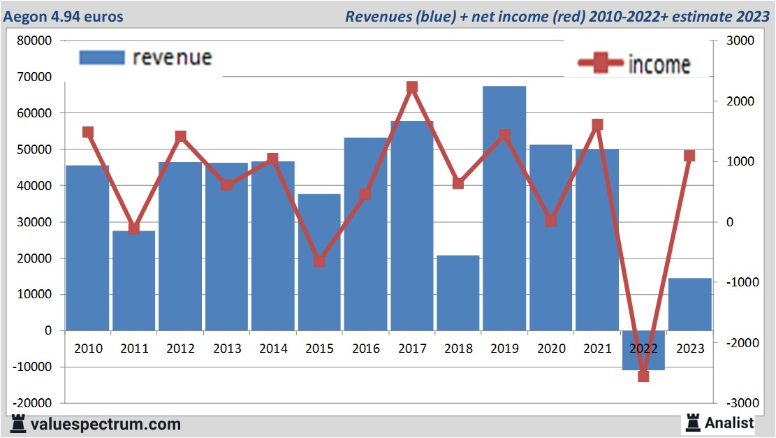 Morgen wird die niederländische Aegon die Ergebnisse des letzten Quartals veröffentlichen. Für dieses Jahr wird von der Mehrheit der Analysten ein Gesamtumsatz von 14.43 Mln. Euro erwartet. Das ist viel weniger als der Ertrag im Jahr 2022 in Höhe von -10864 Mio. Euro.